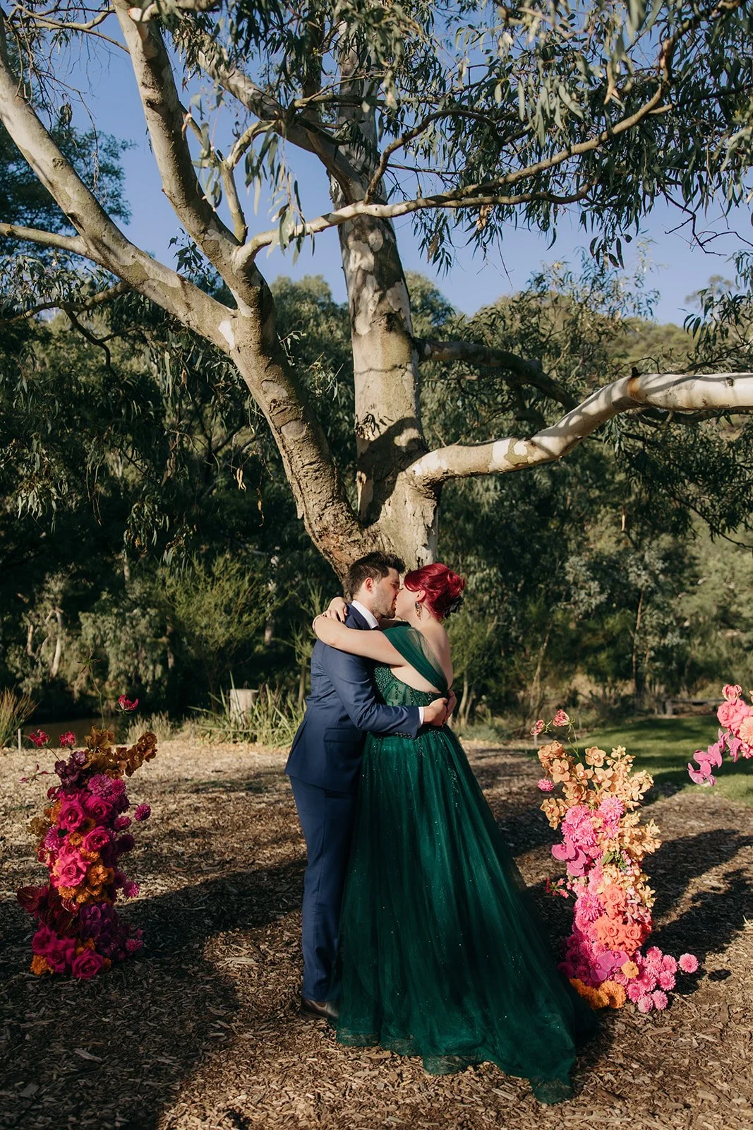 A week out from their ceremony weather reports were predicting one last cold snap, which meant that there’d be more snow at the top of the mountain. Upon learning of the snowy conditions Gemma and Callan made the call to pivot their mountain top ceremony to instead take place within nearby Warburton Cement Creek Redwood forest. I was more than happy to go along with the change of scenery. I had previously visited the Redwood forest with my family, and had instantly thought to myself that this would be such a powerful and witchy site to perform ceremony.