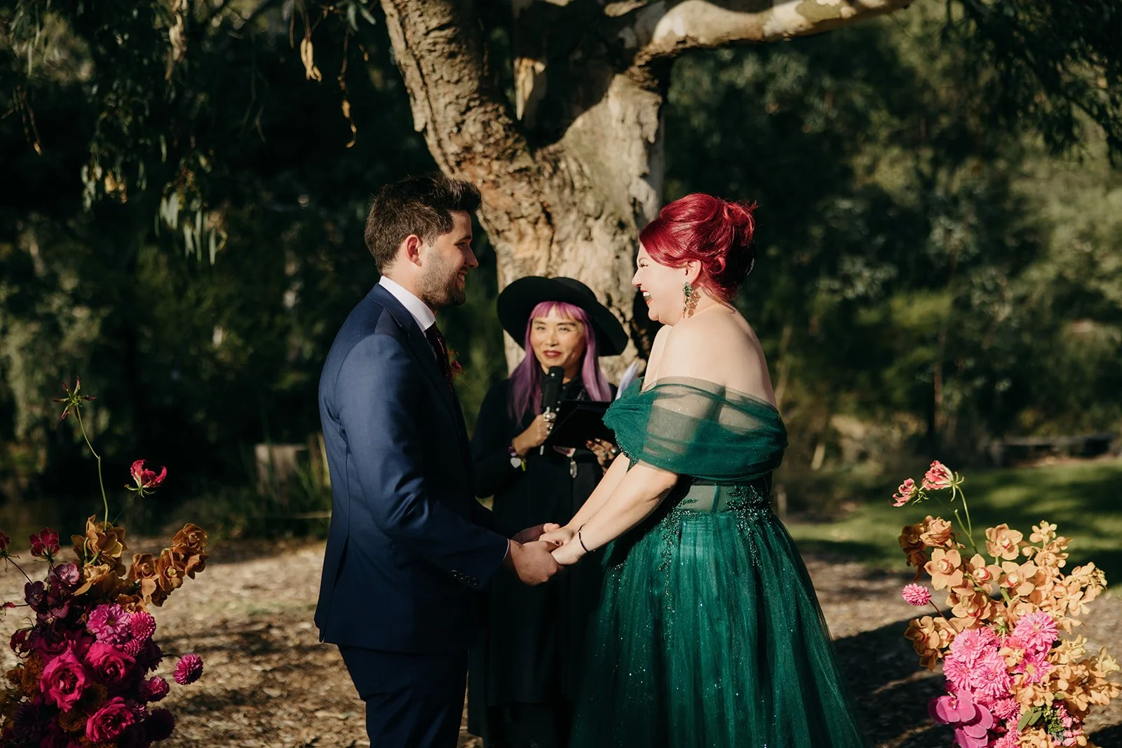 ‘We have attended weddings and have seen celebrants that blended in with the background and not much personality. Kind of just ticking boxes. However, upon finding Celebrant Jam, she is the absolute opposite. She brings so much life, positivity and fun, along with professionalism and wisdom. Her style is so unique and fits with our sense of style as well. Even though we didn't have any ritual or anything too special to add during our ceremony, I love how she asked if there was any way we would like to make it unique. On the day of the elopement, her calming presence yet vibrant energy helped ease our nerves. We loved the little touch of polaroid photos at the end. All of this, has helped make our elopement and ceremony special and unforgettable. Thank you so much!!’